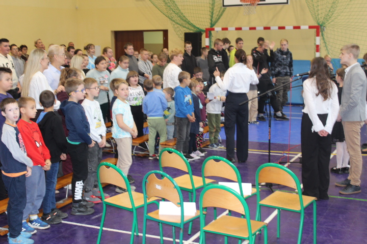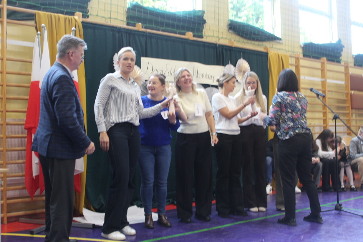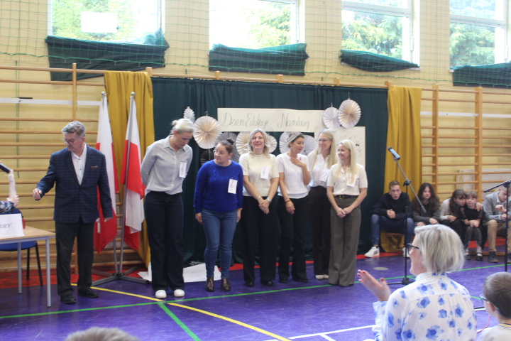 Dnia 10 października 2025 roku w naszej szkole odbył się apel z okazji Dnia Edukacji Narodowej. Uroczystość miała miejsce w sali gimnastycznej. Na początku zabrał głos Pan Dyrektor Leszek Mroziński , który złożył nauczycielom oraz pracownikom szkoły serdeczne życzenia.