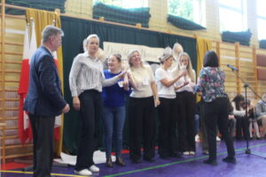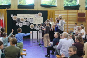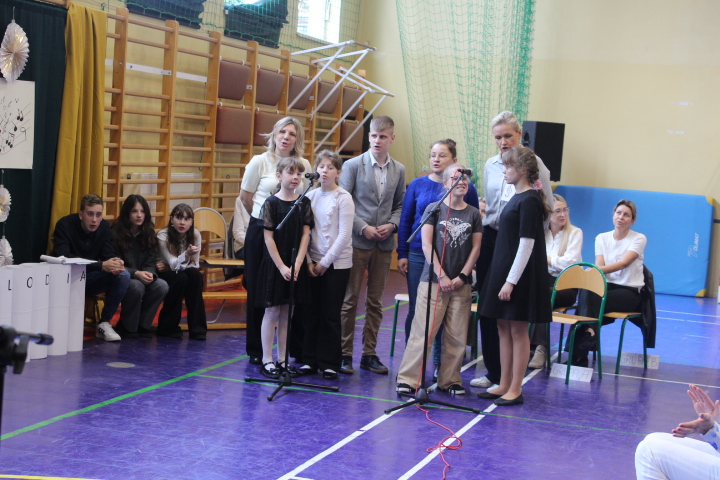 W drugiej części apelu wylosowani nauczyciele brali udział w konkursie „ Jaka to melodia”. Odgadywali oni tytuły piosenek po zagranych nutkach przez panią Gabrysię. Następnie wszyscy zgromadzeni na sali odśpiewali odgadnięte utwory. Był to dzień pełen miłej i radosnej atmosfery.