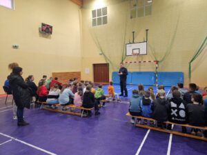 Dzieci z dużym zainteresowaniem słuchały wystąpienia gościa, zadawały pytania i chętnie dzieliły się swoimi doświadczeniami.
