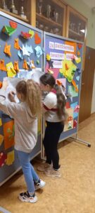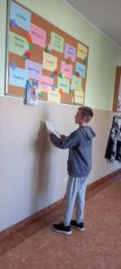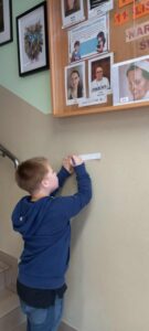 Zadaniem uczniów było znaleźć ich portrety i rozwiązać zadania. Takie podchody ze świętymi są już tradycją w naszej placówce. Wszyscy, którzy rozwiązali zadania otrzymali słodycze.