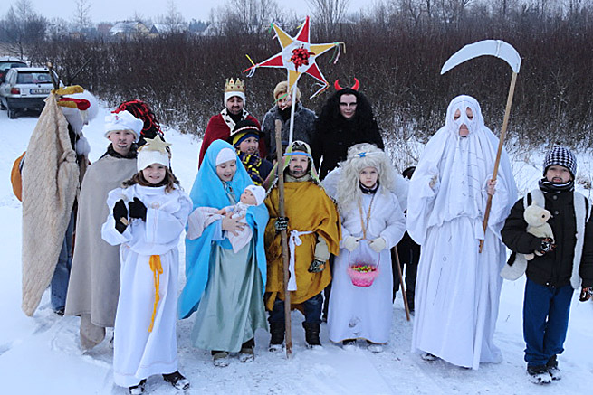 Zwyczaj ten nazywa się „aguinaldo” i przypomina polskie kolędowanie – dzieci chodzą od domu do domu, śpiewają tradycyjne piosenki (villancicos), grają na prostych instrumentach, a mieszkańcy w zamian obdarowują je drobnymi upominkami, takimi jak słodycze czy pieniądze. W ten sposób radośnie i głośno witają nowy rok. Z kolei w Anglii kolędnicy (tzw. „carol singers”), często śpiewają na ulicach i przed domami, zbierając datki na cele charytatywne. A jak kolęduje się w Polsce? W trakcie zajęć uczniowie dowiedzieli się, co symbolizują gwiazda i kometa w kulturze polskiej oraz poznali genezę tradycji kolędowania. Opowiadając o rodzinnych sposobach kolędowania, a także pracując w grupach z wykorzystaniem przygotowanych materiałów, poznali Maszkary – przedchrześcijańskie postacie kolędnicze takie jak Turoń, Gwiazda, Koza i Bocian, chrześcijańskie postacie – Herod, Trzej Królowie, Diabeł, Anioł i Żołnierze, a także Jukace żywieckie, czyli lokalny zwyczaj z Żywiecczyzny.