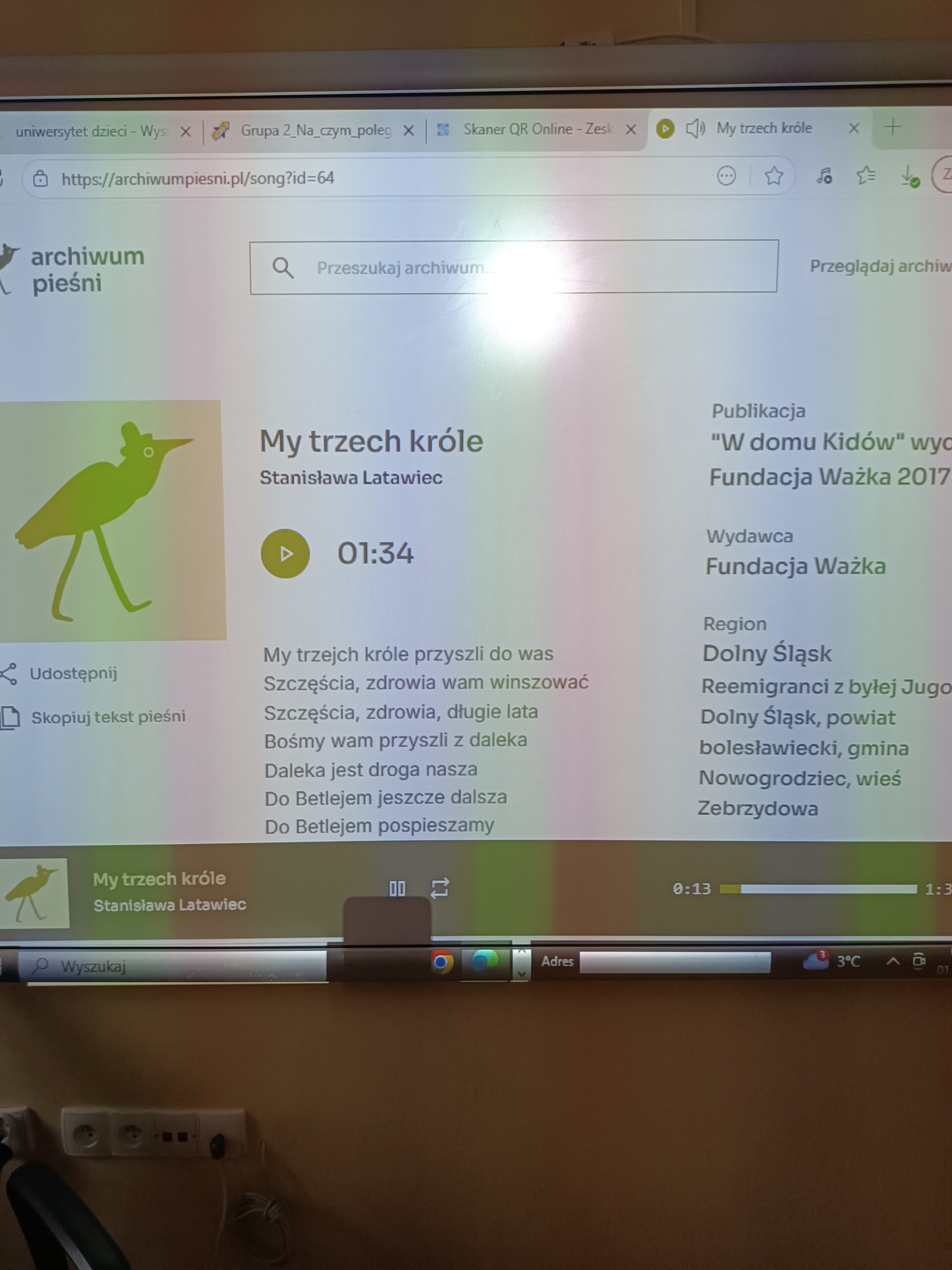 Podczas realizacji drugich zajęć Projektu Edukacyjnego pn. „Dźwięki dawnych lat”, rozmawialiśmy o kolędowaniu. Kolędowanie to zwyczaj znany nie tylko w Polsce, ale i w wielu innych krajach. W Hiszpanii dzieci kolędują nie tylko przed Bożym Narodzeniem, ale również w święto Trzech Króli.