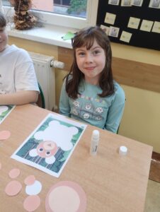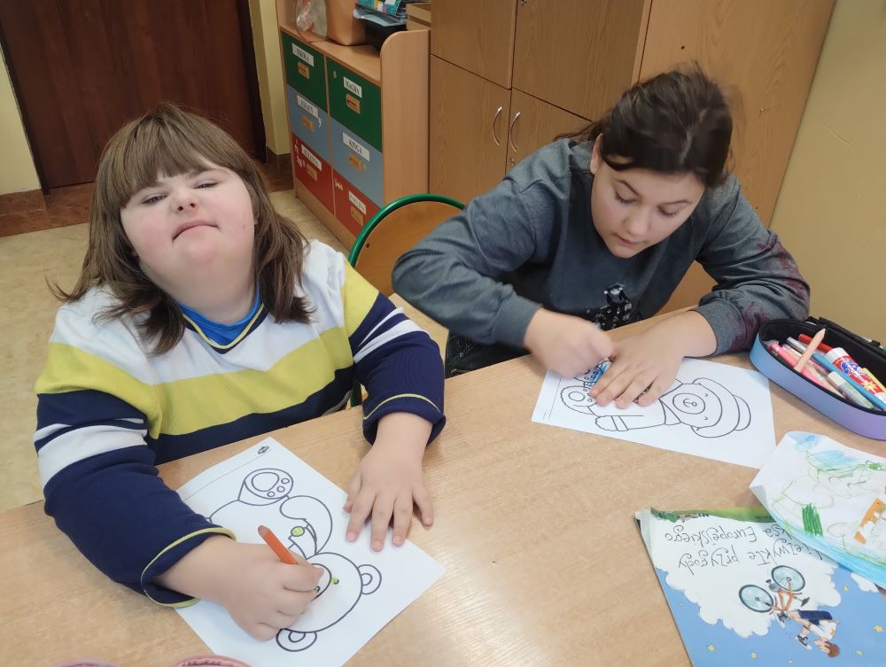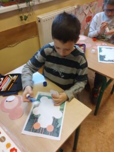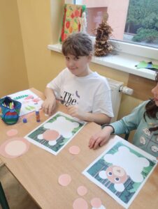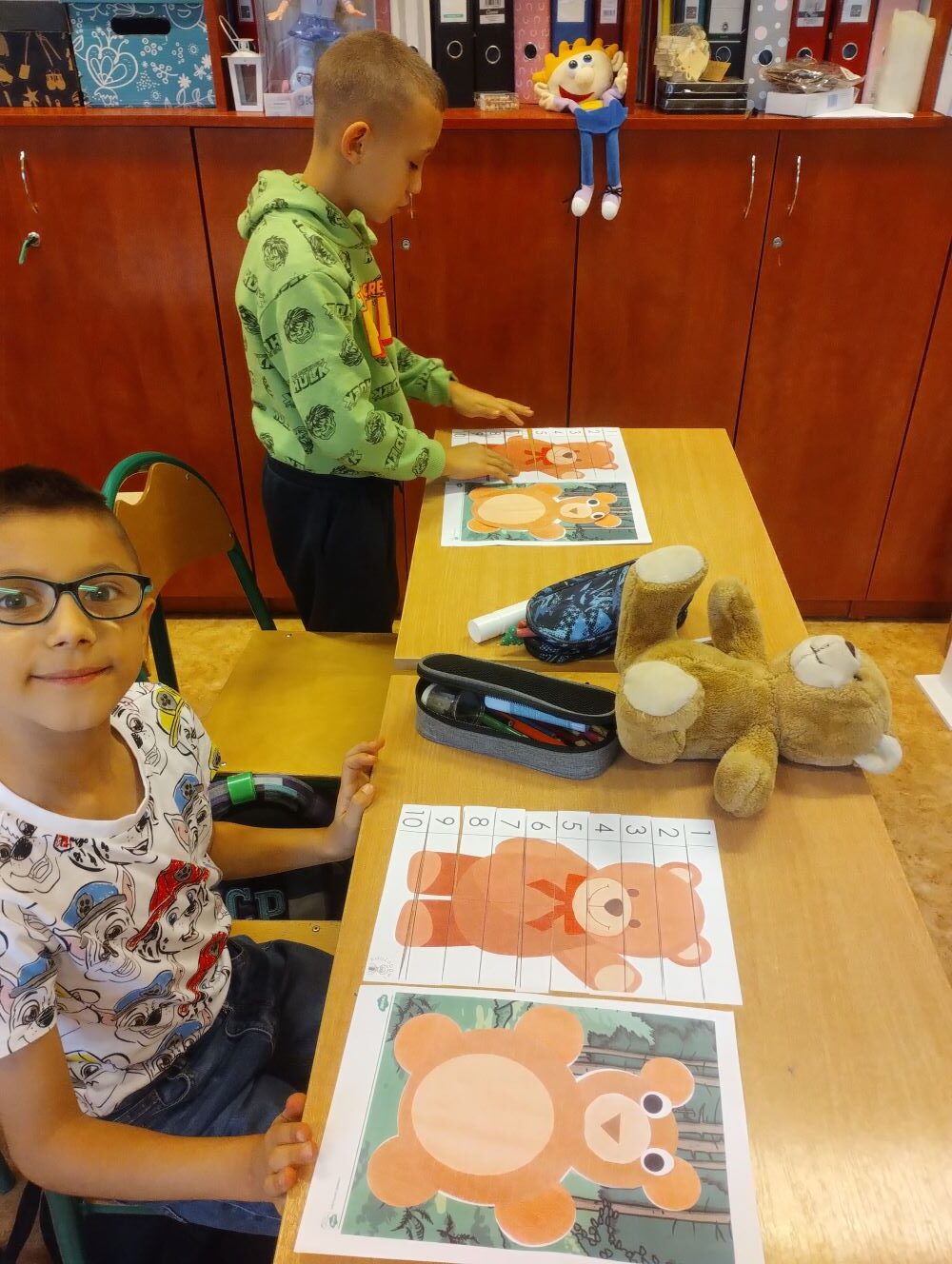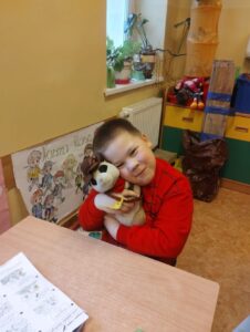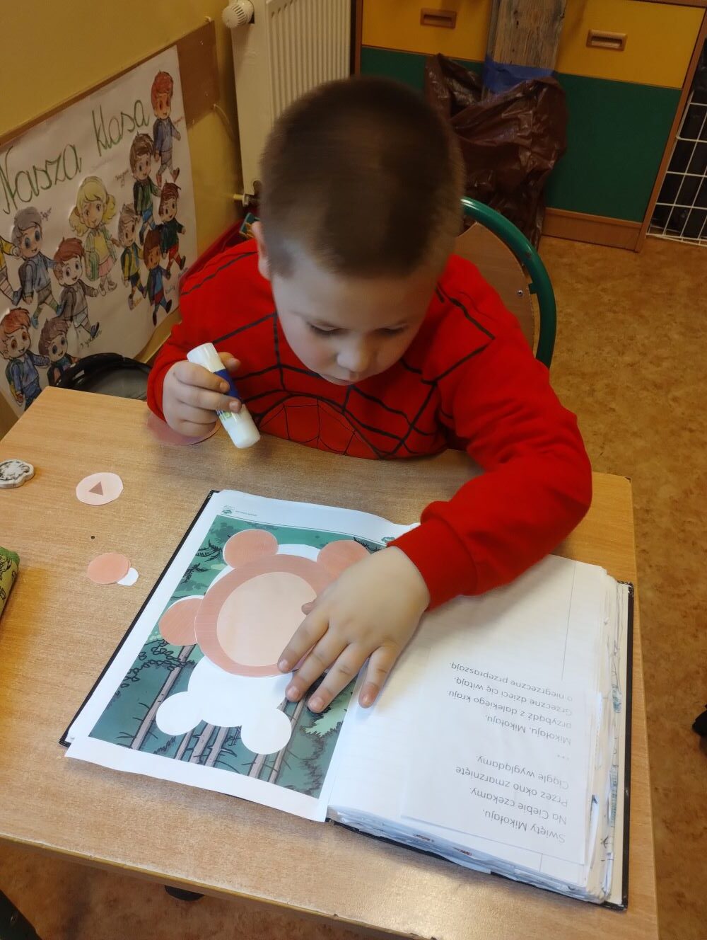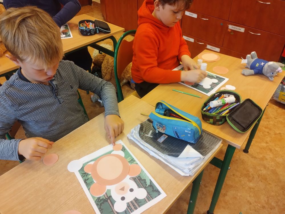 Następnie wykonały prace plastyczne, które polegały na wyklejaniu misia. Na koniec zajęć Pani Agnieszka przeczytała bajkę o Małym Misiu, która się dzieciom bardzo spodobała. Porozmawialiśmy również o swoich ukochanych pluszakach, które dzieci specjalnie przyniosły do szkoły, okazało się, że każdy z uczniów ma takiego przyjaciela, który jest z nim na dobre i na złe oraz do którego można się zawsze przytulić…