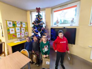 Natomiast na uczniów z oddziałów edukacyjno-terapeutycznych „a” i „e” upominki czekały w salach zajęciowych. Każdy uczestnik mógł samodzielnie odnaleźć swój upominek, co sprawiło wszystkim mnóstwo radości i dodało wydarzeniu wyjątkowego, świątecznego klimatu.