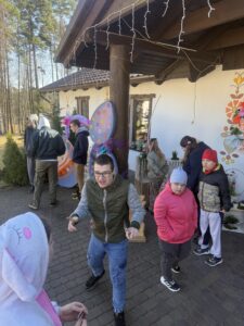 Brali udział w zawodach terenowych oraz w zabawie tanecznej z gigantycznym zającem wielkanocnym. W Ściernisku uczniowie mieli okazję odwiedzić wielkanocną zagrodę ze zwierzętami gdzie zobaczyli króliki, kurczaki, małe kaczuszki oraz kozy.