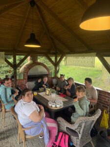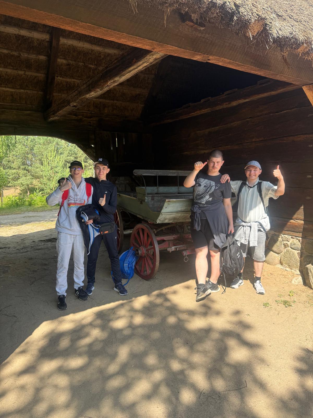 Przyglądaliśmy się z uwagą, jak wygląda miejsce, w którym organizowane są zawody. Podziwialiśmy piękne konie, zabytkowe bryczki i powozy. Mieliśmy nawet okazję przejechać się bryczką! Na koniec dzieliliśmy się wrażeniami przy ognisku. Towarzyszyły nam pieski właściciela. Bardzo dziękujemy wszystkim pracownikom za miłe przyjęcie!