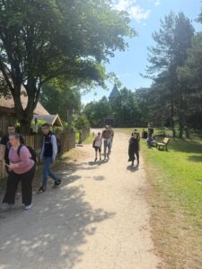 W wycieczce brały udział 4 klasy w tym 2 Gimnazjalne i 2 Przysposabiające Do Pracy wraz z wychowawcami. Atrakcjami tego regionu nie jest tylko piękny krajobraz, bogactwo przyrodnicze, ale również możliwość poznania metod tradycyjnego wypieku chleba w specjalnie do tego wybudowanym piecu chlebowym pod wiatą chlebową przy Kaszubskim Domu Rękodzieła Ludowego w Swornychgaciach. Podczas warsztatów każdy uczeń samodzielnie przygotowywał ciasto do wypieku i na zakończenie zabrał gotowy chleb do domu. Uczestnicy mieli możliwość zapoznania się z procesem przygotowania i pieczenia chleba począwszy od przesiewania mąki, mieszania i wyrabiania ciasta, rozpalenia ognia w piecu chlebowym po wsad chleba do pieca. W oczekiwaniu na wyrośnięcie ciasta i nagrzanie pieca odbyła się prelekcja na temat szacunku, wartości i znaczenia chleba w naszej tradycji i kulturze. Pod wiatą chlebową znajduje się także palenisko (plata) przeznaczona do wykonywania tradycyjnych regionalnych potraw, oraz grill, z którego mogliśmy skorzystać i w trakcie przerwy upiec kiełbaski. Następnie zwiedzaliśmy Kaszubski Dom Rękodzieła Ludowego, gdzie znajdują się stare, tradycyjne przedmioty używane w gospodarstwach domowych i wystawy twórców ludowych.